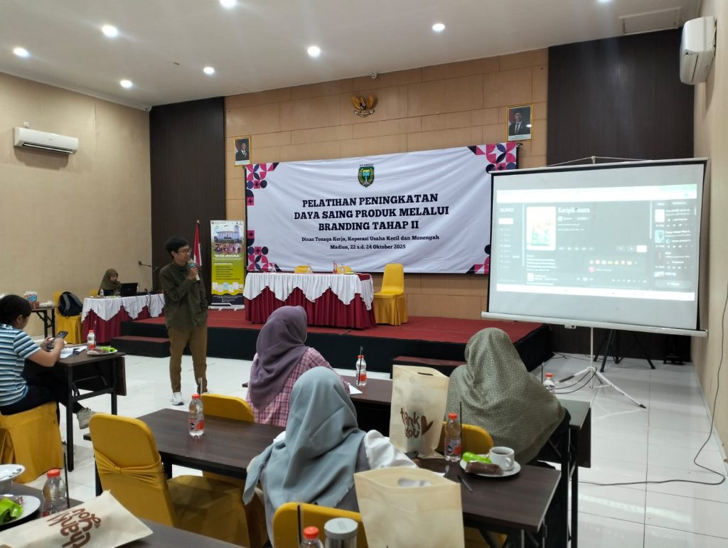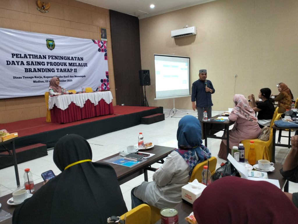 Dalam upaya mendorong pelaku Industri Kecil Menengah (IKM) agar semakin berdaya saing dan berorientasi pasar, Dinas Tenaga Kerja, Koperasi, Usaha Kecil dan Menengah (DisnakerKUKM) Kota Madiun menyelenggarakan Pelatihan Peningkatan Daya Saing Branding Produk Tahap II pada 22–24 Oktober 2025.